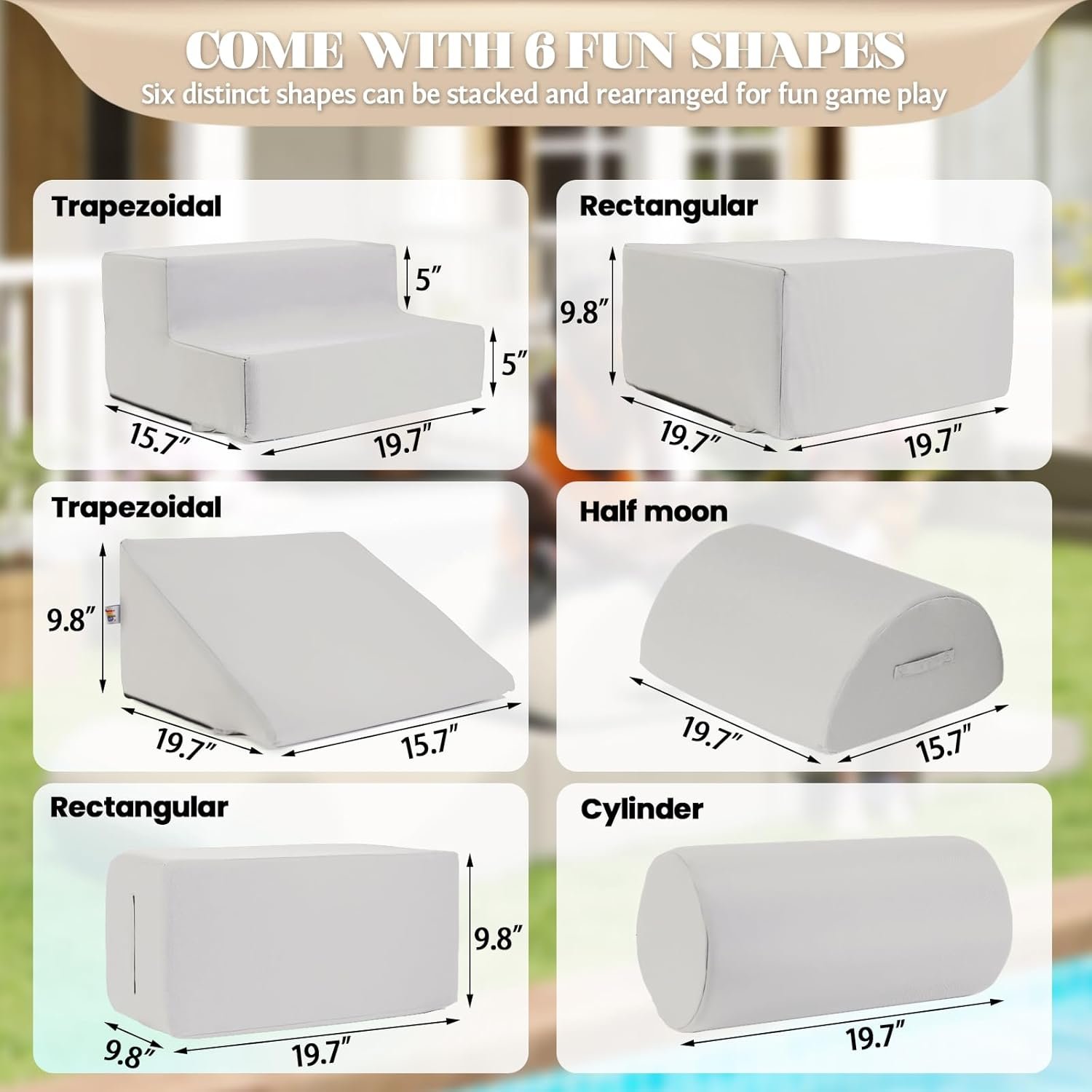 - Waterproof and Stain-resistant Fabric:The climbing blocks with upgraded Olefin waterproof fabric have dual protection against moisture and UV rays. This soft play set can be placed freely in children’s rooms, on terraces, or in courtyards, allowing children to play without restrictions. In the face of situations like juice spills or mud stains, they can be easily wiped clean, continuoly creating a hygienic play environment for children.